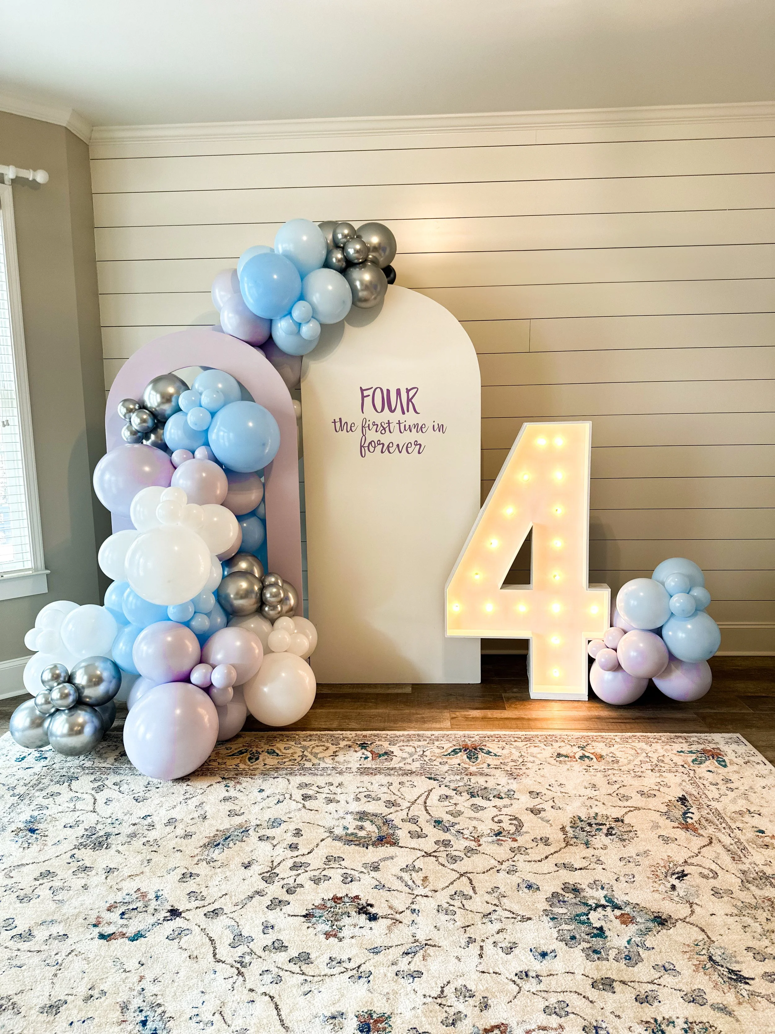 The perfect birthday or anniversary bundle! Features 1 of our wooden Marquee Numbers, and a freestanding balloon column with your choice of 3 colors.